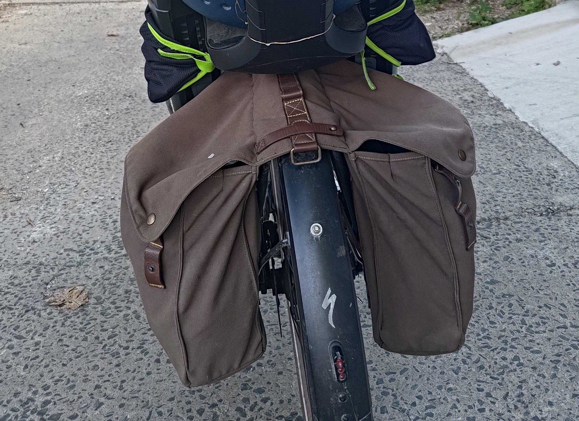 baskets and panniers (bike-specific bags): no grocery bags on handlebars