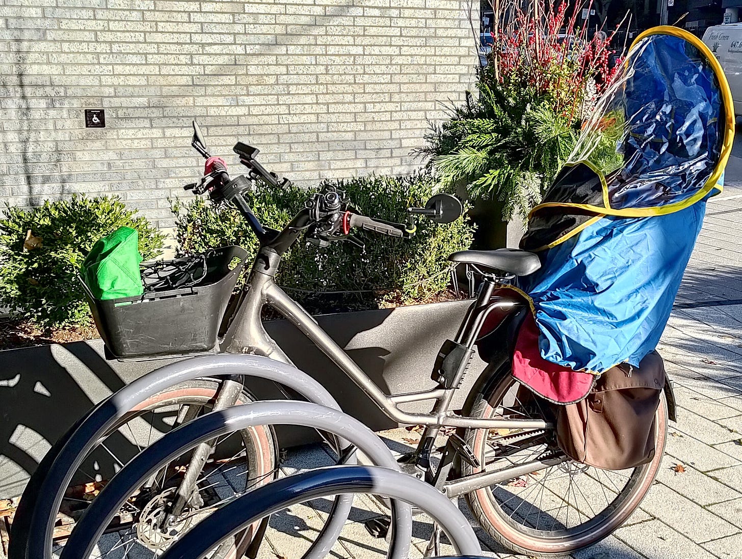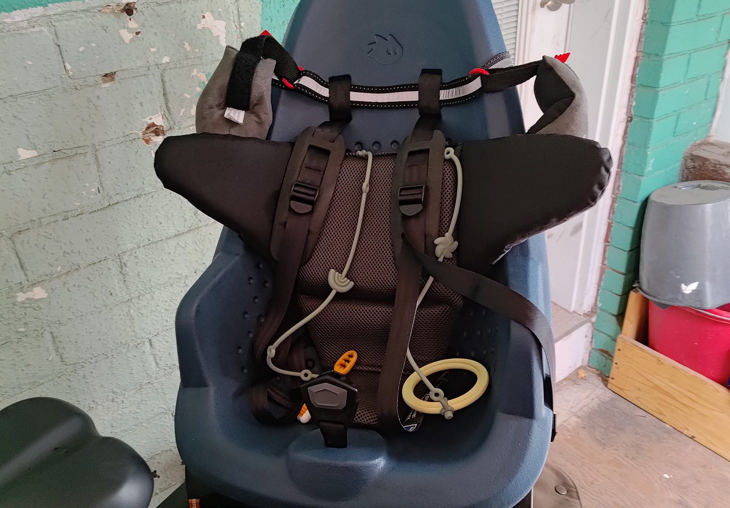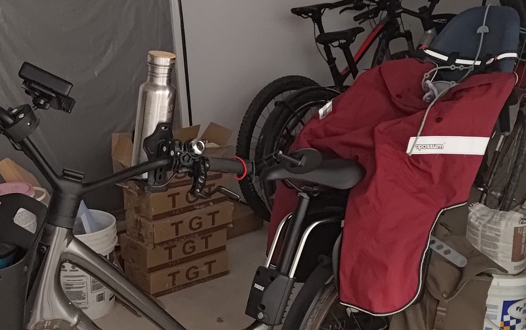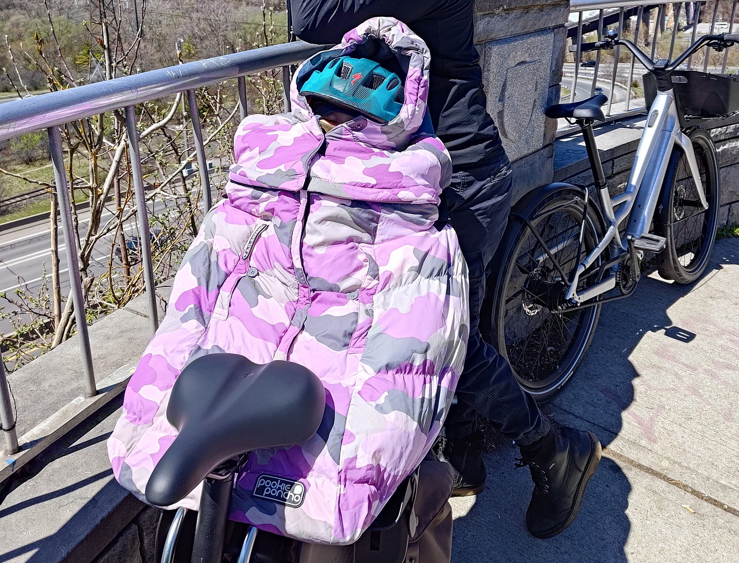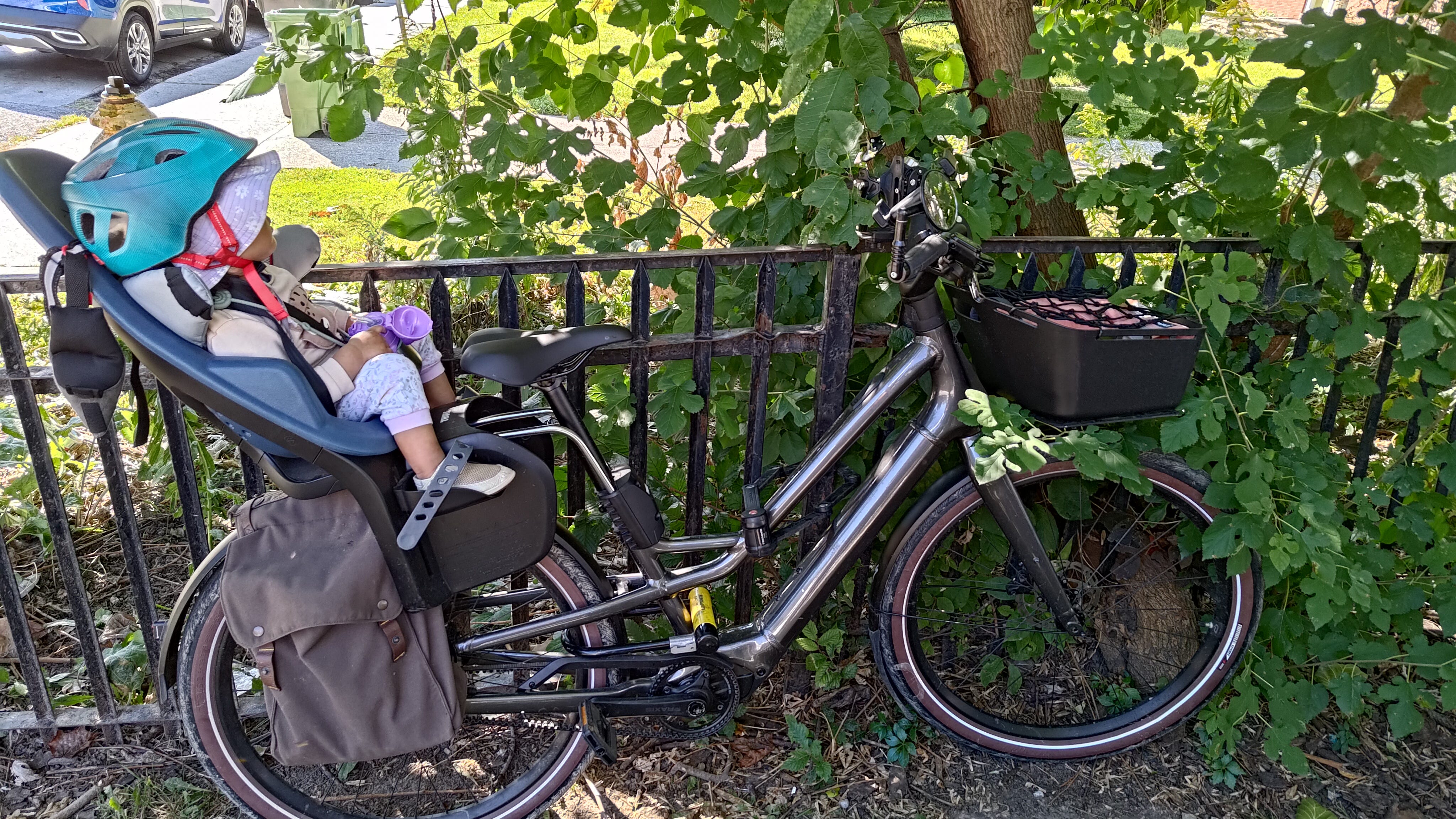 Post-baby, I needed to add things to the bike to keep baby safe and comfortable. I’ll detail how I landed on each of these items in longer articles. But for now, this is the “what” to add to your bike, without the longer “why” you want it or “how” I found it.